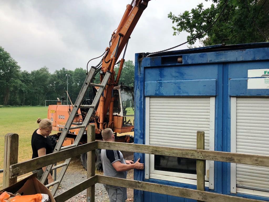 Am Samstag wurde mit viel Frauenpower der nächste Schritt auf dem Westerhamm-Platz gemacht. Der Container steht jetzt an seinem Platz. Jetzt kann der Endausbau beginnen.