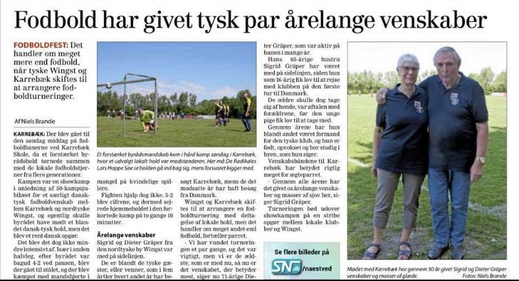 Über die Pfingstfeiertage reisten die Fußballer des VfL Wingst zur 50. Begegnung mit ihrem Partnerclub Karrebaek IF nach Dänemark. Die Rekordbeteiligung von 56 Wingstern zeigten den Verantwortlichen, dass diese Partnerschaft einen sehr hohen Stellenwert besitzt.