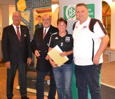 Am vergangenen Donnerstag wurden auf dem Kreisjugendtag in Flögeln Jugendleiterehrenzeichen des NFV verliehen. Unsere Fußballer Tim Schlobohm, Matthias von Glahn (war im Urlaub), Benjamin Maire und Fußballerin Claudia Sahlke erhielten die Auszeichnung in Bronze aus Händen des Kreisvorsitzenden Walter Kopf und des KJO Michael Heinsohn überreicht. Herzlichen Glückwunsch!