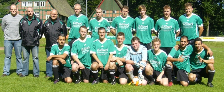Das Foto zeigt Nils Paulsen, Betreuer Thomas Maire, Betreuer Jörg Grabbe, Dennis Gerdts, Jens Gerdts, Nils Erdmann, Nils Köllner, Kevin Brandt, Maik Pigorsch (hinten von links).