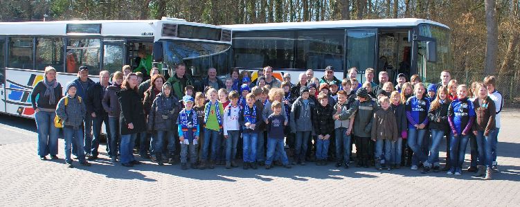 Am 19. März besuchten 113 Juniorenfußballerinnen und -fußballer des VfL Wingst mit ihren Betreuern und Eltern die Bundesligapartie des Hamburger SV gegen des 1. FC Köln. Für viele der Nachwuchsfußballer war es der erste Stadionbesuch und entsprechend sah man auch eine leichte Nervosität in den Gesichtern der Kinder. Fußballfördervereinsvorstandsmitglied Andreas Sahlke und seine Frau Claudia hatten die Tour hervorragend vorbereitet und so lief auch alles nach Plan. Insbesondere natürlich auch das Spiel, denn der Favorit der Kinder, der HSV siegte hoch mit 6:2-Toren. Das die Tour durchgeführt werden konnte, lag zum einen an der großzügigen Unterstützung durch den Fußballförderverein, aber noch viel mehr an Bernd Lührs, dem Inhaber der Firma Primo-Reisen Lührs, der die Busse zu dieser Fahrt kostenlos zur Verfügung stellte.