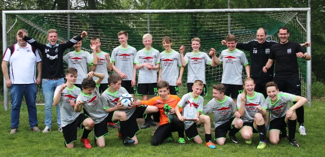 Das Meisterfoto zeigt Kreisjugendobmann Michael Heinsohn, Betreuer Johannes Hölting, Finn-Niklas Stanke, Jakob Katt, Jannes Rosenau, Matti Pekka Czesinski, Lasse Raap, Gunnar Bolowski, Linas Merten Ahlf, Trainer Tim Schlobohm, Trainer Niklas Hinck (hinten von links), Jannis Zdahl, Brian Tiedemann, Felix Friemelt, Malte Hinsch, Marlon Lenzsch, Jonte Arndt, Kim-Charline Griemsmann, Luis Cyrol (vorne von links). Es fehlen Tido zu Knyphausen, Ferdinand Lübbeke, Jonte Färber, Jamie Subschinski, Lea Treinies und Fitnesstrainerin Katrin Katt.