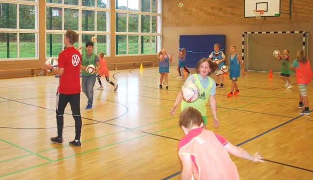 Am Dienstagnachmittag wurde der Event abgesagt und soll nun im nächsten Jahr vor den Sommerferien stattfinden. Für die 4. Klassen gab es am Mittwoch dann aber doch noch Programm, denn das DFB-Mobil mit FSJ-ler Ole Ober kam in die Wingst und die Schülerinnen und Schüler, die Trainer Claudia Flemming-Blockhaus und Tim Schlobohm und einige Lehrer konnten das ausgezeichnete und interessante Angebot mit großer Begeisterung in der Sporthalle nutzen.