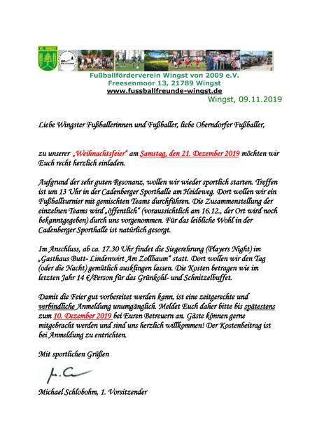 nachstehend die Einladung zur diesjährigen Weihnachtsfeier am 21. Dezember.....