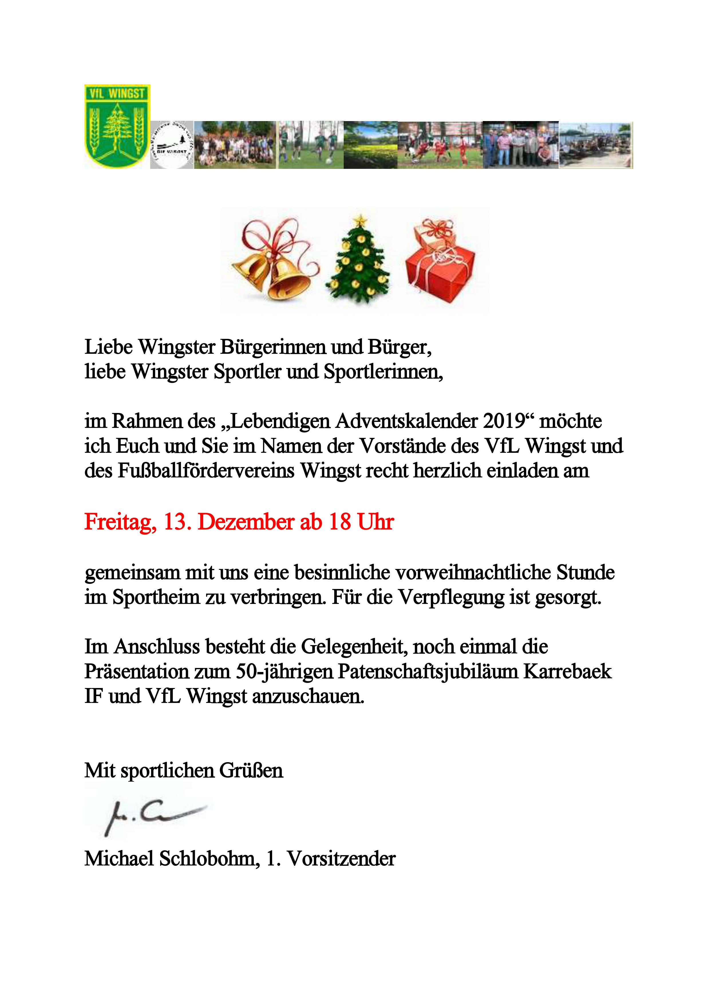 Liebe Wingster Bürgerinnen und Bürger, liebe Wingster Sportler und Sportlerinnen,