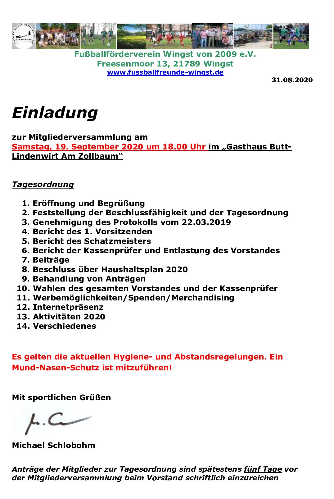 am 19. September findet die jährliche Mitgliederversammlung des Fußballfördervereins statt. Hier die Einladung: