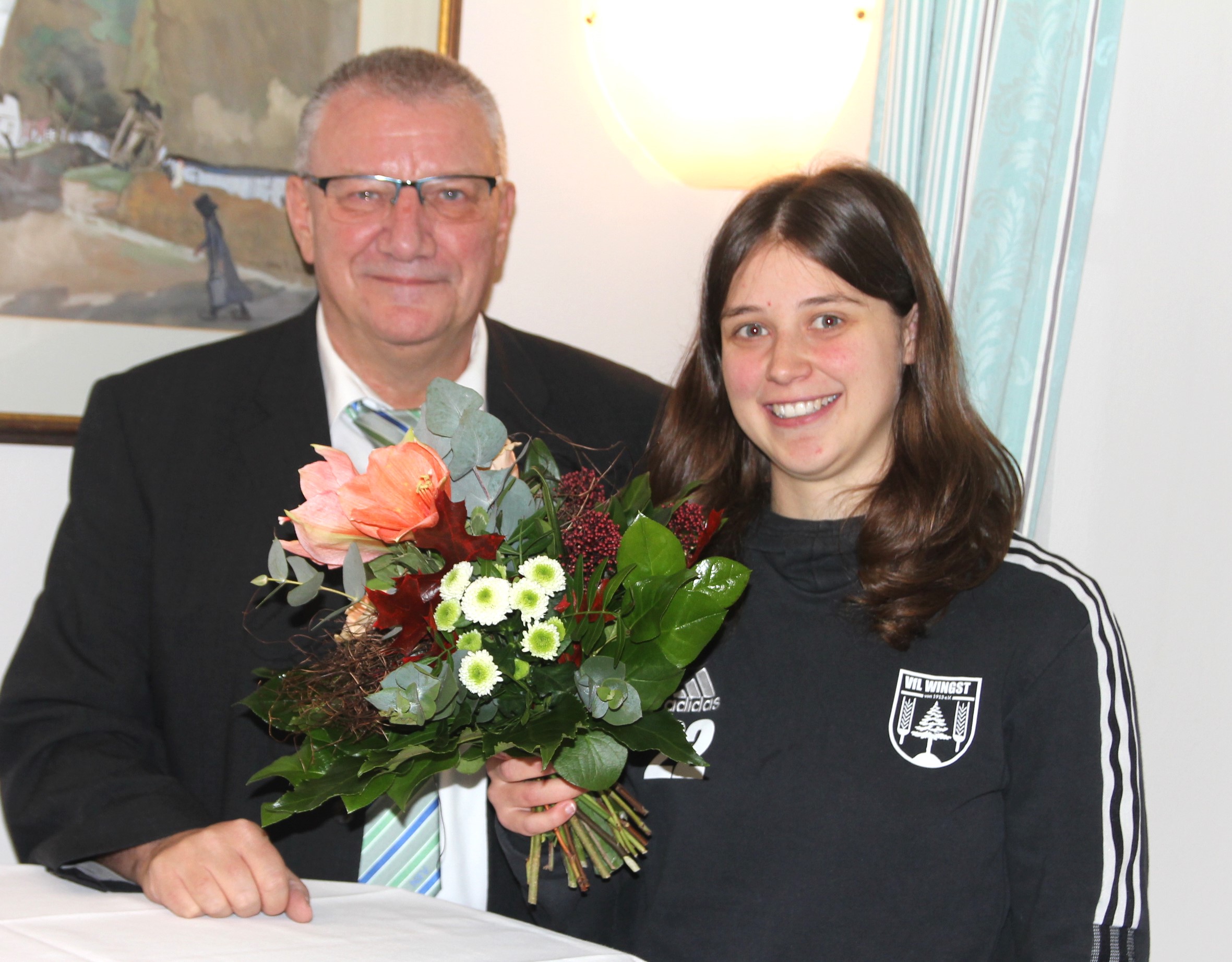 Es folgte anschließend die Ehrung der „DFB-Fußballhelden - Aktion junges Ehrenamt“. Hier wurde Julia Rieper (VfL Wingst) ausgezeichnet. Julia Rieper ist für ihr junges Alter ein Beispiel an Einsatz und Zuverlässigkeit. Als lizenzierte Trainerin der D-Juniorinnen U13 der JSG Am Dobrock ist sie ein Aktivposten in der Wingster Fußballabteilung und der JSG Am Dobrock.