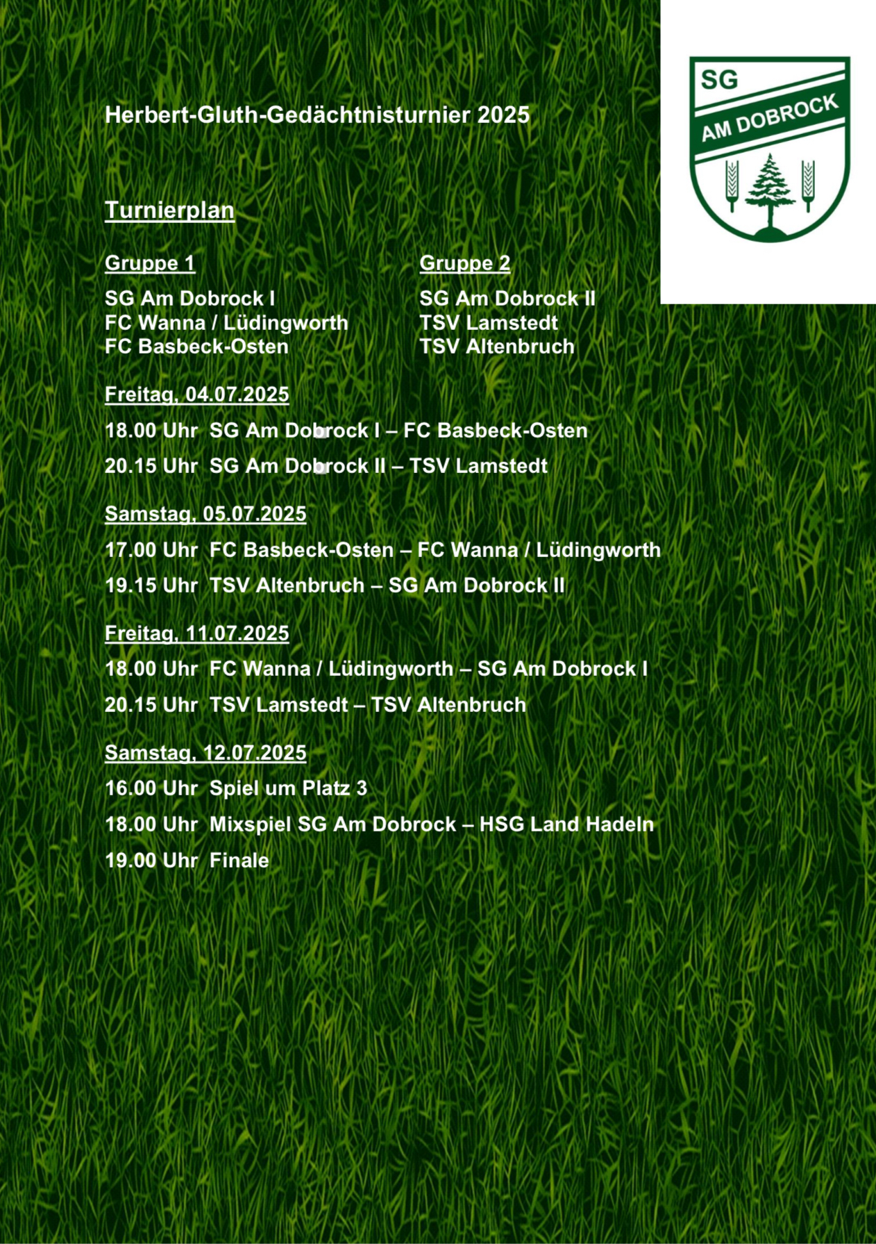Zum ersten Mal wird das Turnier von der neu gegründeten Spielgemeinschaft Am Dobrock – bestehend aus dem TSV Germania Cadenberge und dem VfL Wingst – ausgerichtet und markiert damit den offiziellen Startschuss für die gemeinsame sportliche Zukunft.