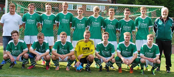 Das Foto zeigt Betreuer Kevin Brandt, Jan Baack, Peter Roeben, Max Meyer, Conrad Huffmann, Hergen Katt, Nick Mahler, Torben Löffler, Mark-Philipp Brandt, Trainer Richard Grantz (hinten von links); Niklas Riedel, Kilian Dick, Niklas Stüve, Tobias Richters, Marvis Wobser, Chris-Fabian Oschwald, Philip Büers (vorne von links); es fehlen Betreuer Sebastian Kuck, Luca Bolzhauser, Felix Hasselbusch, Luca Föge, Andre Hoekstra und Jonas Heinbockel.