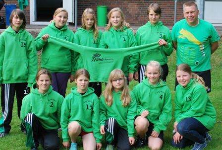 Kürzlich wurden die Wingster D-Mädchenfußballerinnen vom Wingster Reiseunternehmen „Primo-Reisen-Lührs“ mit einem Satz neuer Aufwärmpullover ausgestattet. Schon seit vielen Jahren ist die Wingster Firma Hauptsponsor des VfL Wingst. Firmenchef Bernd Lührs war beim Übergabetermin leider verhindert, wünschte dem jungen Team aber viel Erfolg für die neue Spielzeit. Das Foto zeigt Julia Rieper, Fabienne Sahlke, Juliene Reyelt, Sarah Sahlke, Jessica Hoose, Betreuer Andreas Sahlke (hinten von links); Lara Sahlke, Jana Stelling, Tanja Walter, Kim Kallinna, Marilena Claus. Es fehlen Merle Heinbockel, Vanessa von Essen und Betreuerin Claudia Sahlke.