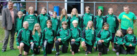 Klaus Schlichtmann von der Concordia Versicherungsgruppe stattete kürzlich die Wingster Mädchenfußballerinnen mit einem Satz neuer Regenjacken aus. Der Cadenberger Sponsor ließ es sich nicht nehmen, die Ausrüstung den beiden Mannschaften selbst zu übergeben und wünschte den Teams viel Erfolg für die neue Saison. Das Foto zeigt Sponsor Klaus Schlichtmann, Julia Schlichtmann, Rebecca Stangier, Marilena Claus, Jana Stelling, Juliene Reyelt, Sarah Sahlke, Jessica Hoose, Julia Rieper, Fabienne Sahlke, Betreuer Andreas Sahlke (hinten von links); Kim Kallinna, Tanja Walter, Lara Sahlke, Finja Schade, Katharina Zars, Mieke Plepla, Navin Elma, Talea Patjens, Kira Dick (vorne von links). Es fehlen Merle Heinbockel, Vanessa von Essen, Sharlien Hermann und Betreuerin Claudia Sahlke.