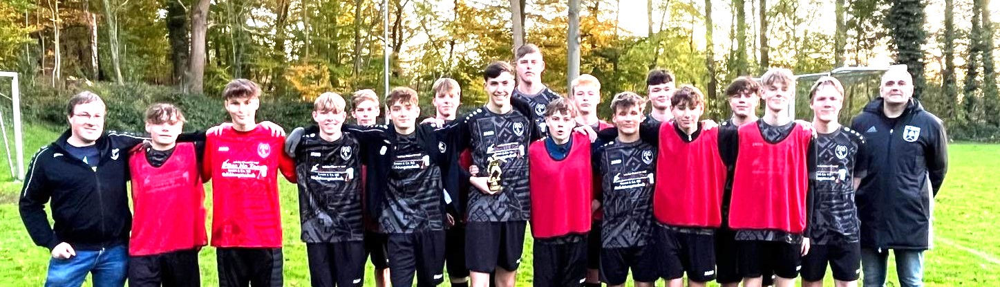Am vergangenen Wochenende nutzte der Vorsitzende und Fußballabteilungsleiter Michael Schlobohm nun die Möglichkeit zur Ehrung anlässlich des Punktspiels der B-Junioren der JSG Am Dobrock und überreichte Roman Schneider im Beisein seines Teams die Trophäe.