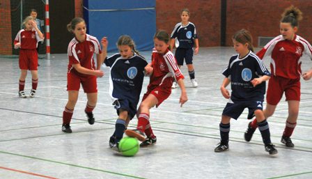 Am vergangenen Sonntag waren die E-Juniorinnen des VfL Wingst, Gastgeberinnen eines Hallenturnieres in der Cadenberger Sporthalle am Heideweg. In einer bis auf den letzten Platz gefüllten Halle sahen die Zuschauer sehr gute Spiele der beteiligten Mannschaften. Bei den Gastgeberinnen spielten ausschließlich Mädchen, die erst im letzten Jahr durch die an der Wingster Grundschule durchgeführte Schul-AG zum Fußball kamen. Man merkte, dass es ihre ersten Spiele in einer großen Halle und vor so vielen Zuschauern waren. Es reichte am Ende zwar nur zu Platz 6, aber alle zeigten großen Einsatz und Willen und was am wichtigsten ist, sie hatten alle Spaß am Fußball. Nach zahlreichen Spielen in der Vorrunde kam es zu den Platzierungsspielen. Dort konnte sich zunächst die JSG Biene im Spiel um Platz 5 mit 1:0 gegen die Gastgeberinnen aus der Wingst durchsetzen. Im Spiel um Platz 3 gelang dem TSV Eintracht Immenbeck ebenfalls ein 1:0-Erfolg gegen den SC Hemmoor. Nach einem spannenden Finale zwischen dem VfL Stade und dem FC Lune mußte ein Siebenmeterschießen über den Turniersieg entscheiden. Am Ende behielten die Staderinnen mit 8:7 die Oberhand.