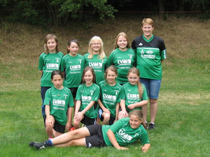 Da im NFV Kreis Cuxhaven keine eigene E-Juniorinnen-Staffel besteht, nahm der VfL Wingst im Kreis Stade an den Meisterschaftsspielen teil und sicherte sich mit 9 Punkten und 19:7-Toren vor der JSG Niederelbe die Meisterschaft in der Staffel 2. Das Foto zeigt Sarah Bincke, Angelina Gloystein, Fenja Meyer, Anna Schubert, Claudia Sahlke (hinten von links); Amy Hupe, Fiona Grave, Nova Grave, Jolina Suhr (vorne von links); davor Natalie Reyels. Es fehlen Zoe Cyplik, Marieke Eilers und Kim Griemsmann.