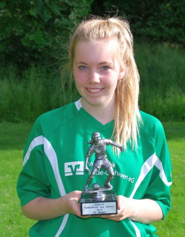 Jugendfußballerin des Jahres wurde Miriam Kallinna. Miriam begeistert durch hohen Trainingsfleiß und ist immer mit vollem Einsatz dabei. Sie versprüht immer gute Laune, bringt hohe Motivation und Zuverlässigkeit mit, engagiert sich zudem auch außerhalb des Fußballplatzes immer gern für die Mannschaft. Im letzten Jahr absolvierte sie außerdem erfolgreich die Ausbildung zum Junior-Coach und engagiert sich im Verein bei den E-Juniorinnen als Betreuerin.