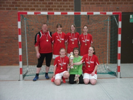 Am vergangenen Sonntag fand in Cadenberge das Hallenturnier der Wingster C-Juniorinnen statt. Angetreten waren acht Mannschaften aus drei verschiedenen Landkreisen (Stade, Lüneburg, Cuxhaven) sowie eine Mannschaft aus Hamburg (FFC Wilhelmsburg). Nach den Gruppen- und Halbfinalspielen kam es zum Schluss zu einem Finale zwischen der Mannschaft des MTV Hesedorf und den Gastgeberinnen des VfL Wingst. Dieses Endspiel gewannen die Mädchen aus Hesedorf knapp mit 1:0 und sicherten sich somit den Siegerpokal.