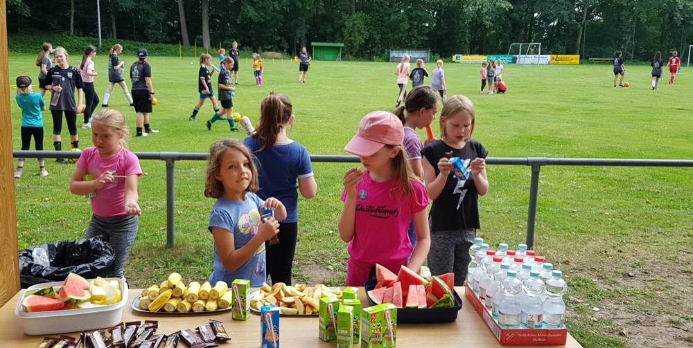 Die Hoffnung auf eine gute Anzahl an Mädchen, die sich für den Fußball interessieren könnten, wurde weit übertroffen. Letztendlich fanden sich 45 Mädchen auf dem Platz ein und waren gespannt auf den Nachmittag. Dank der guten Vorbereitung von Sabrina Steinberg und ihrem Team, bestehend aus Myriam Curras-Varela, Svea Sophie Schütt und Fenja Ivens, war die Menge an Kindern kein Problem. An verschiedenen Stationen wie Torschuss, Hindernislauf und Passspiel konnten die ersten Erfahrungen gesammelt werden.