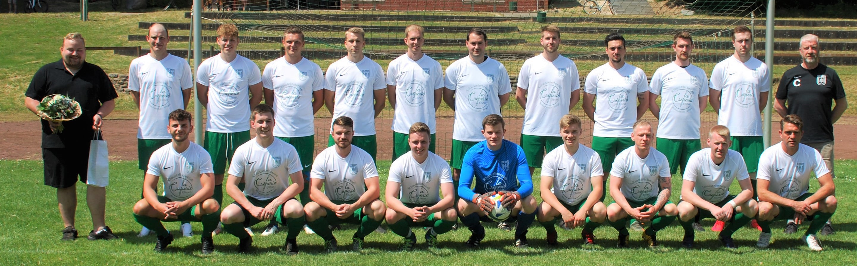 Mit einem Satz neuer Trikots wurde kürzlich die erste Herrenmannschaft des VfL Wingst von Manuel Elsner (Betreuer der F-Junioren U9 II der JSG Am Dobrock) und Alena Gorba, die seit Anfang 2020 mit ihrer „La Crêperie Elsner“ in der Molkereistraße in der Wingst zu finden sind, ausgestattet. Mit einem breiten Sortiment an Crêpes und Baguettes sind die beiden von Donnerstag bis Sonntag von 11 bis 20 Uhr für den kleinen oder großen Hunger vor Ort. Dafür bedankte sich die Mannschaft beim Fototermin mit einem kleinen Dankeschön.